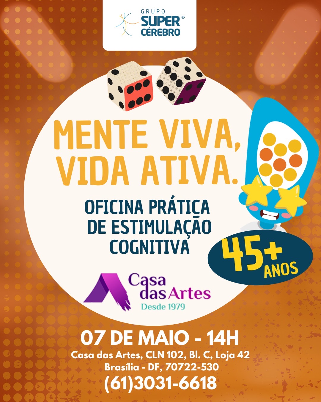 Vivemos em uma era onde a longevidade é uma conquista real. No entanto, viver mais nos traz um desafio fundamental: como garantir que nossa mente acompanhe o ritmo do nosso corpo? A resposta não está no repouso, mas no movimento — o movimento dos neurônios. É com essa premissa que o Super Cérebro Longevidade da Asa Norte, em parceria com a tradicional Casa das Artes, promove no próximo dia 07 de maio uma oficina prática de estimulação cognitiva desenhada exclusivamente para o público 45+.